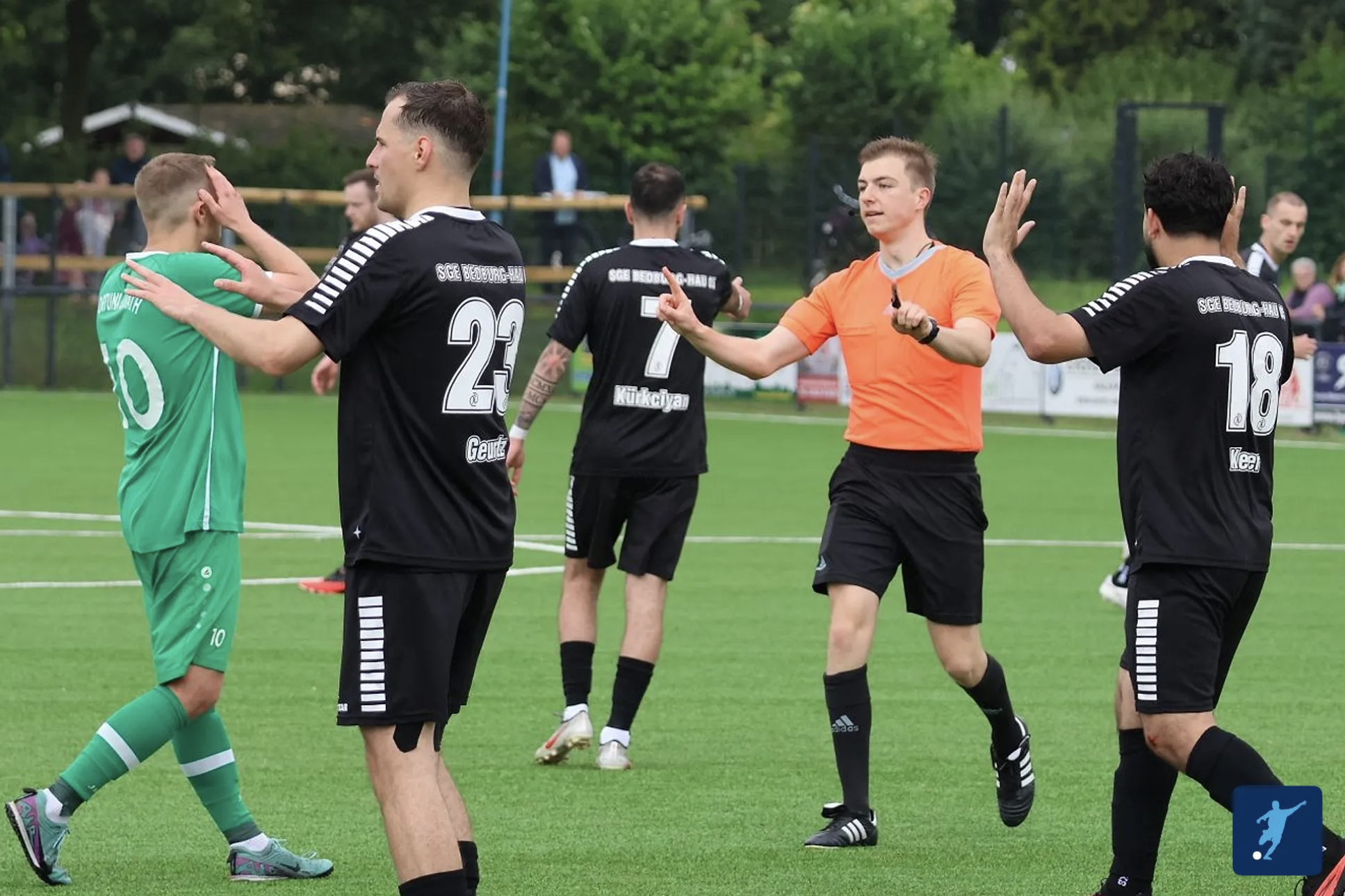 Eine halbe Stunde später startet dann das Landesliga-Spiel von Florian Behler. Gemeinsam mit seinen Assistenten Fabian Slomka und Luis Kleinpeter leitet er das Aufeinandertreffen des TSV Solingen und des FC Kosova Düsseldorf.